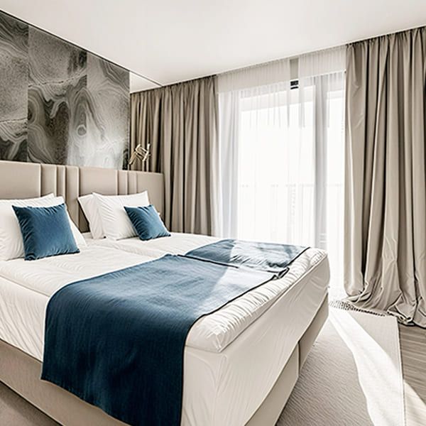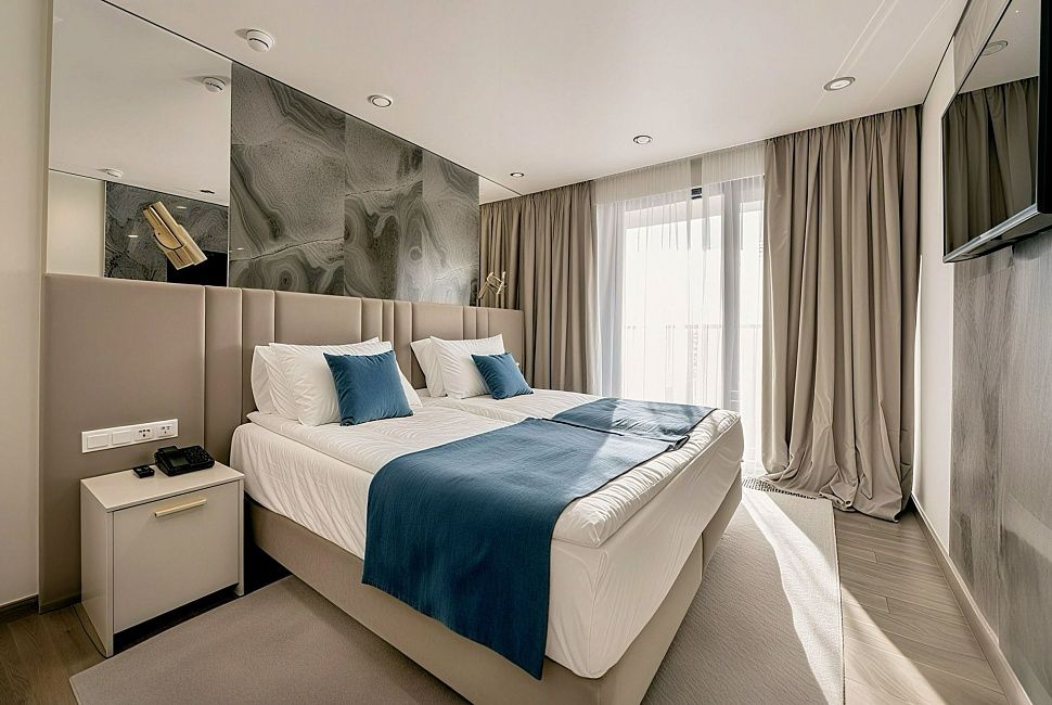 22 m2Functional double room with the ability to accommodate a third guest on an armchair bed.Without balcony