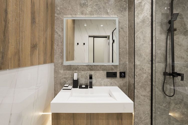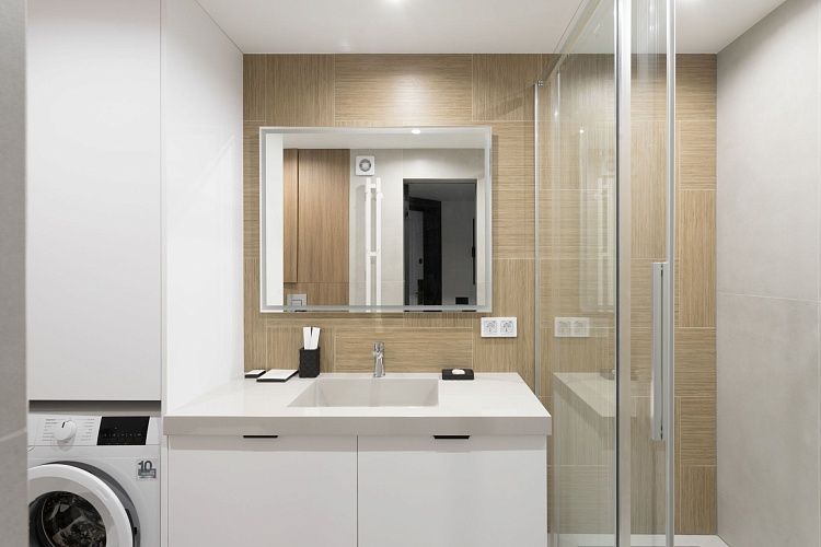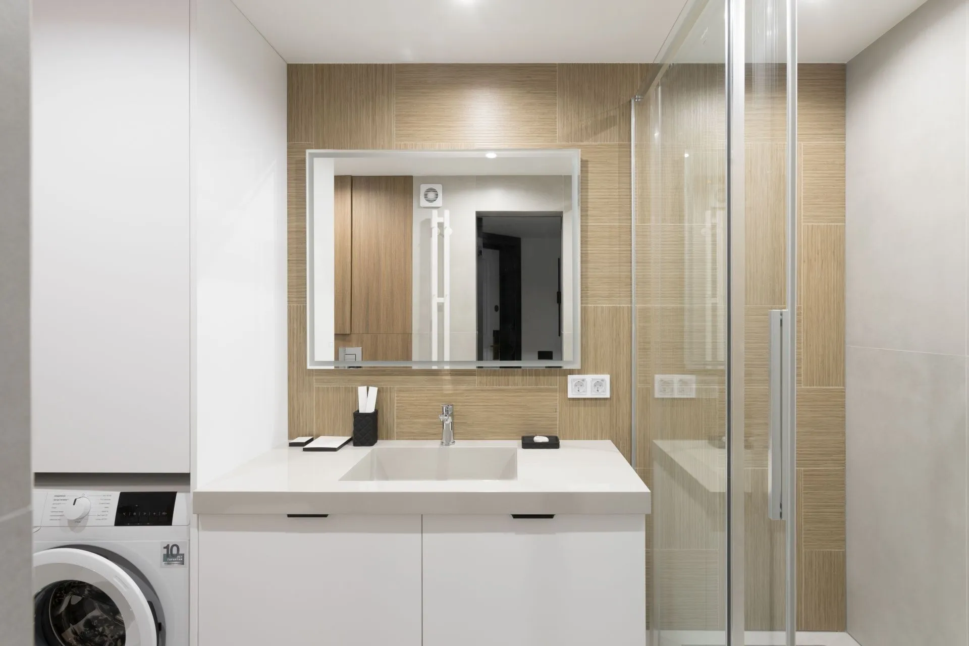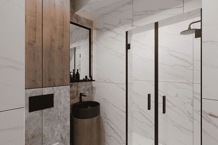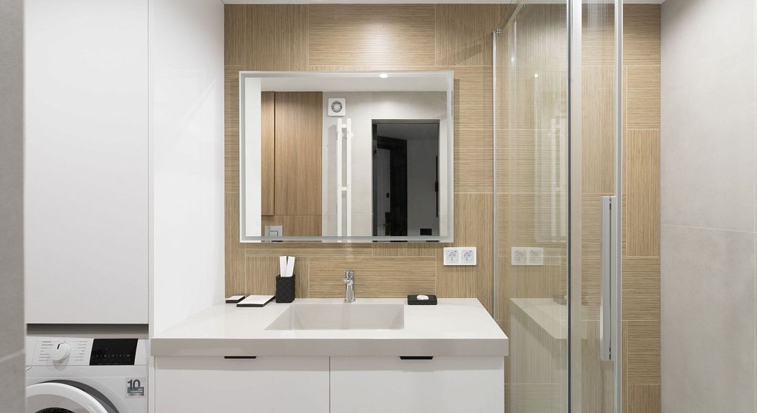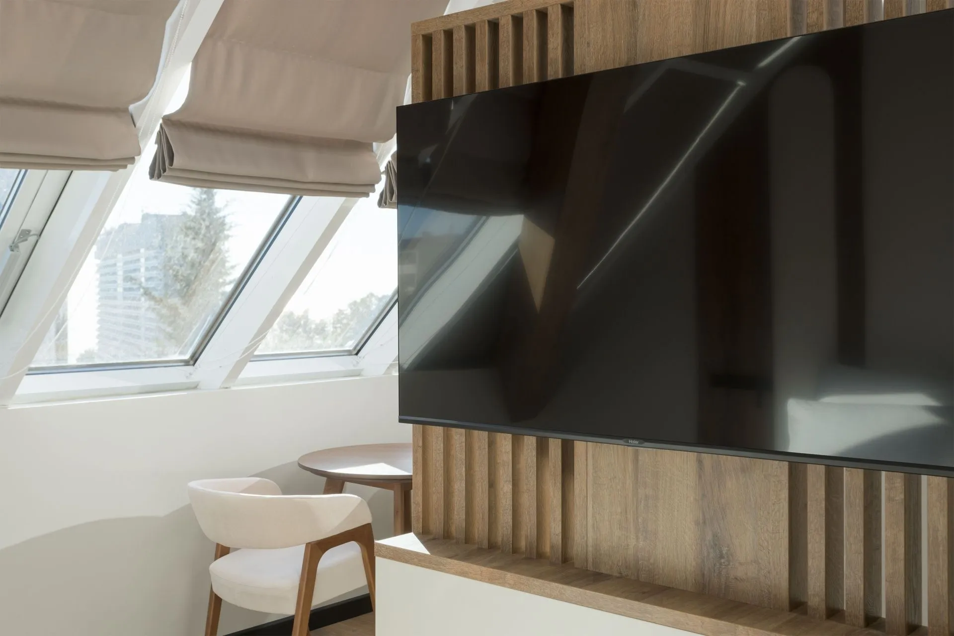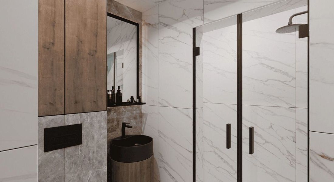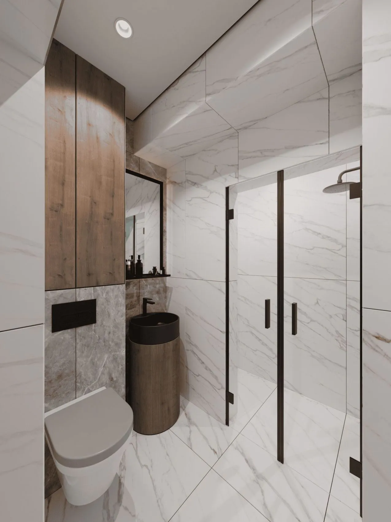 Spacious 2-room suite with a cozy living room, separate bedroom, fully equipped kitchen, and shower cabin.