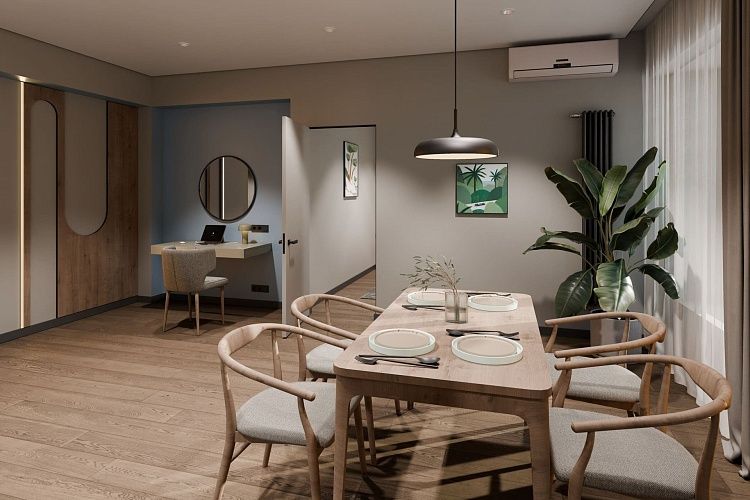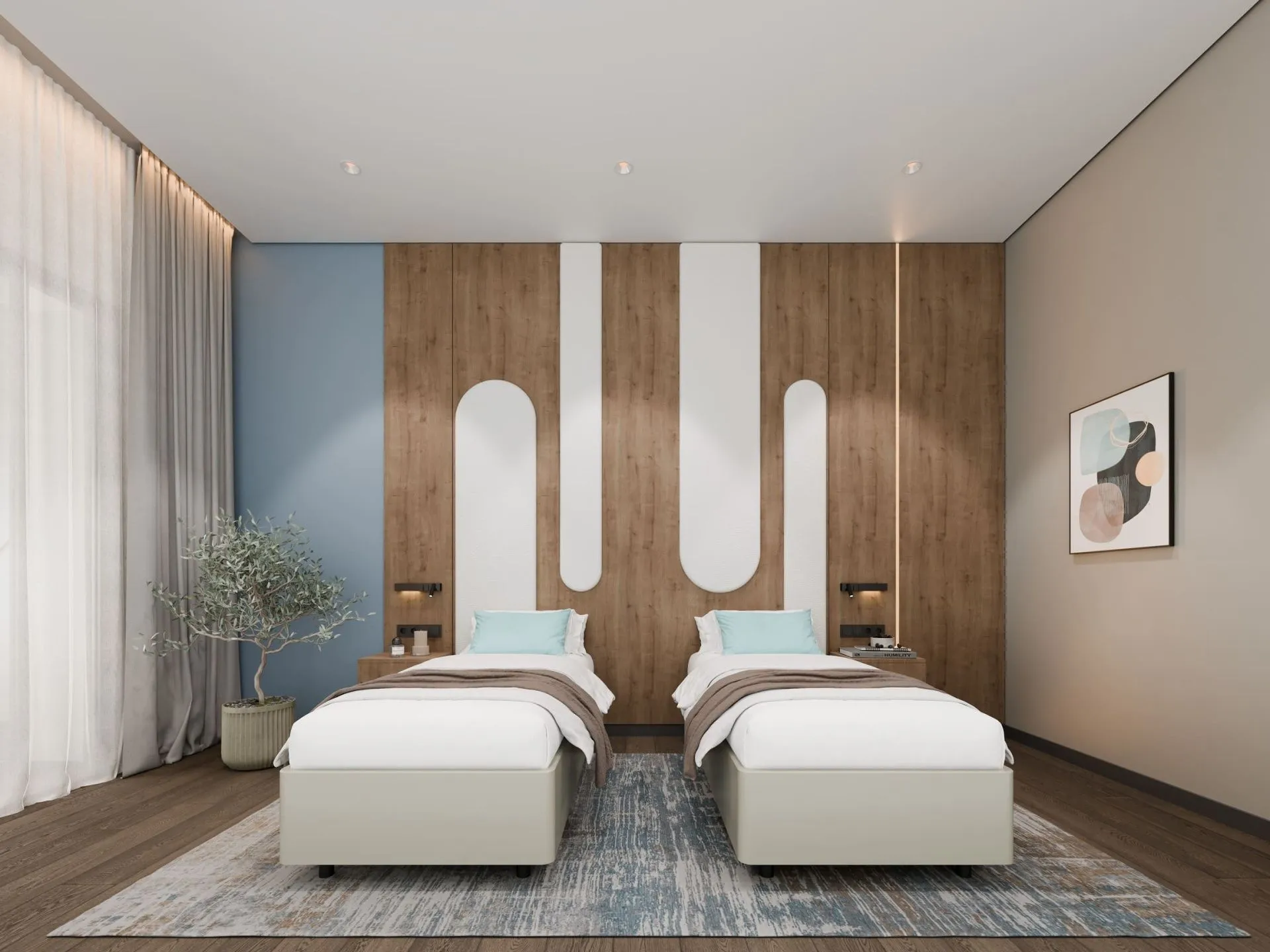 Spacious family 4-room suite with three bedrooms for 4–8 people. Euro folding bed can be added.
