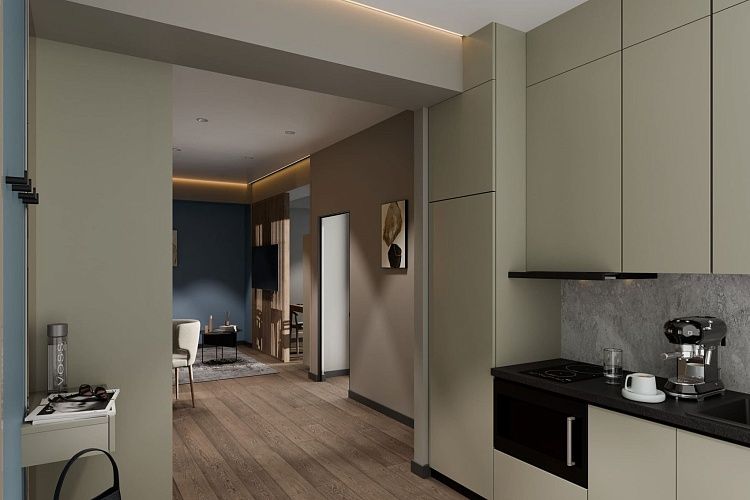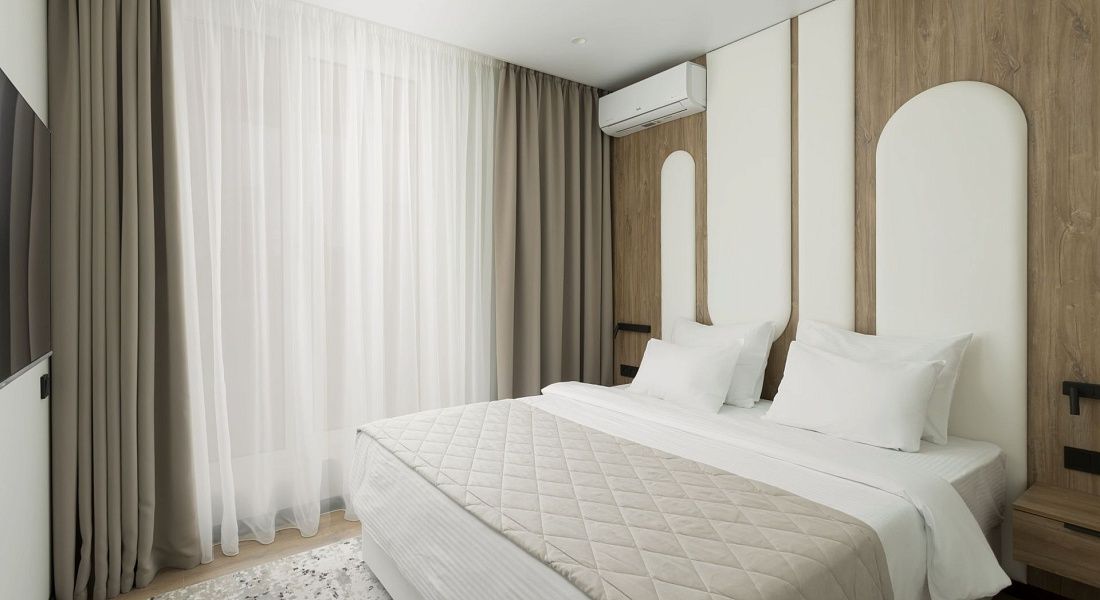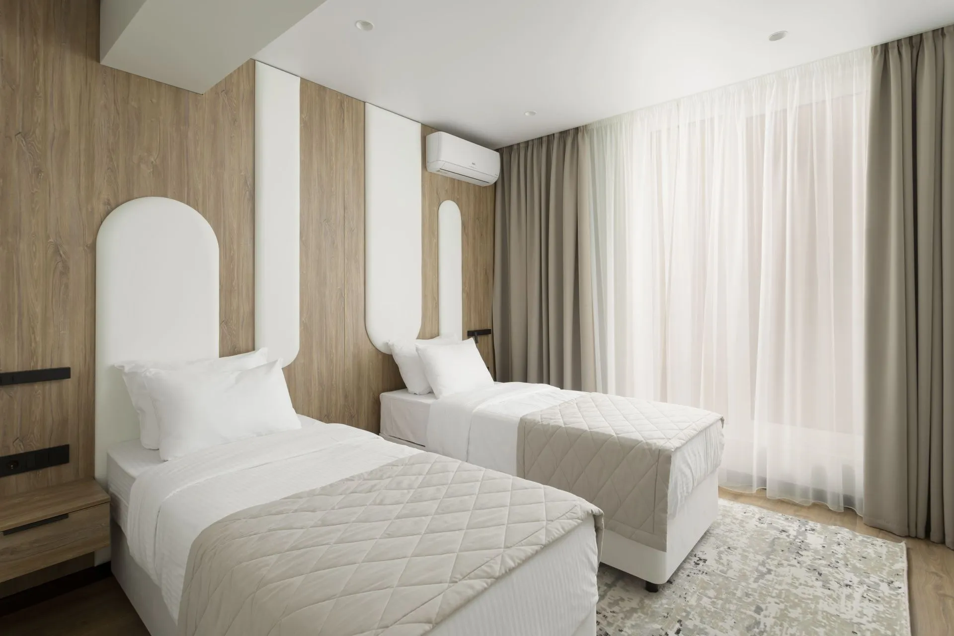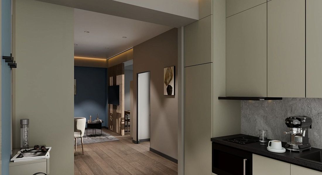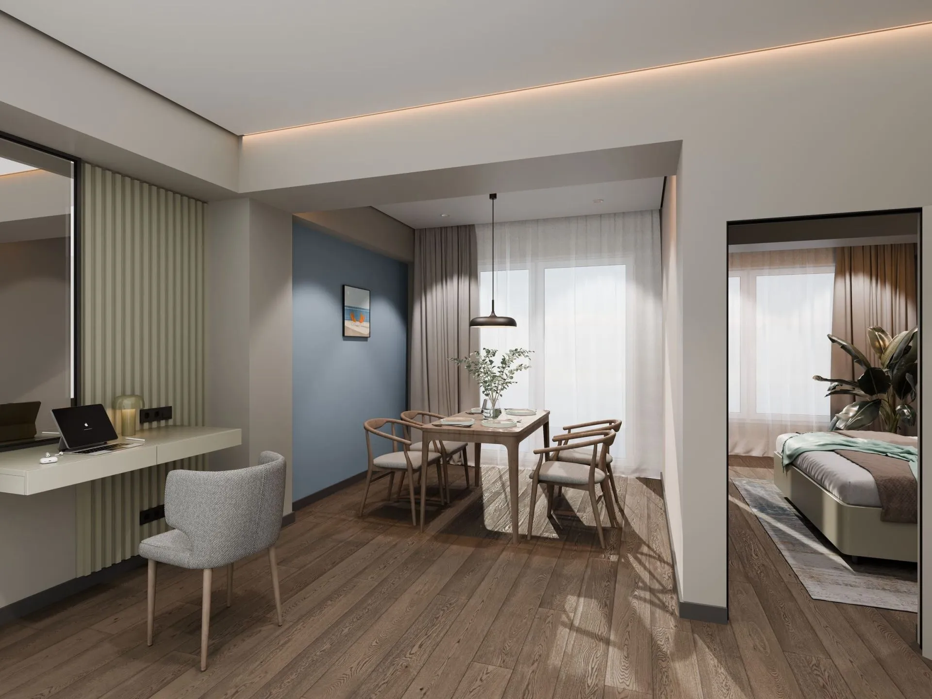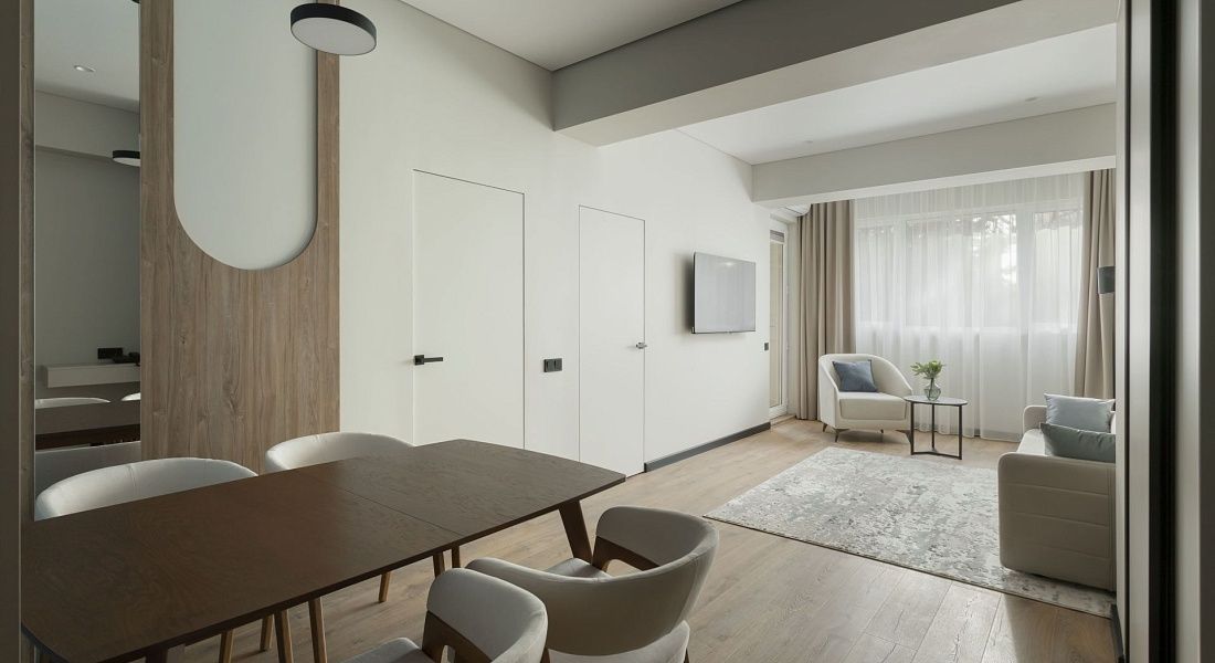 Spacious 2-room suite with two separate rooms: a bedroom and a living room. Fully equipped kitchen.