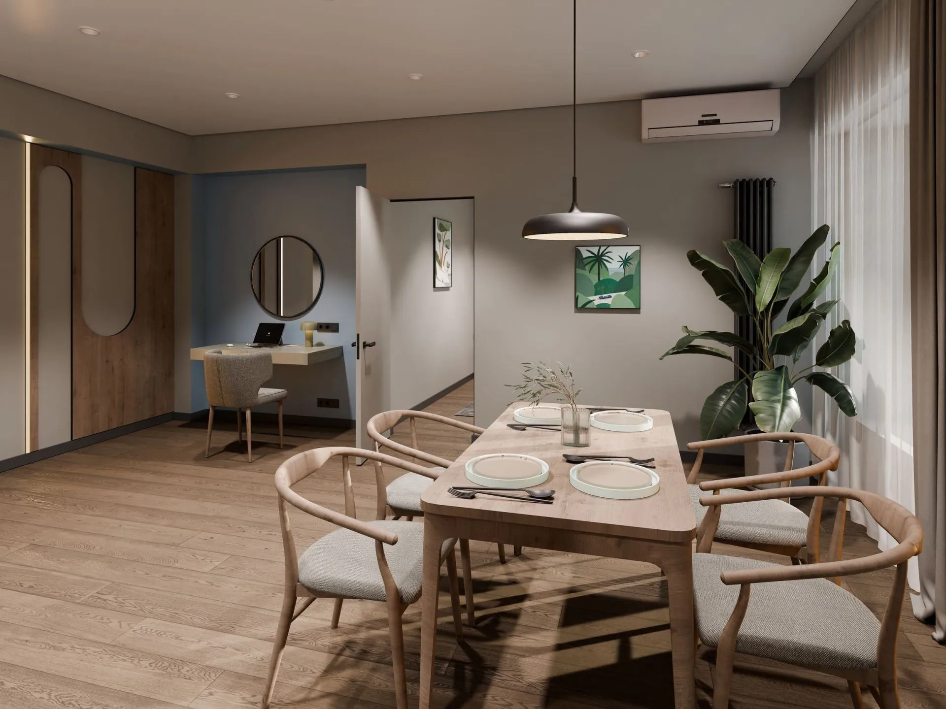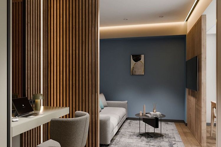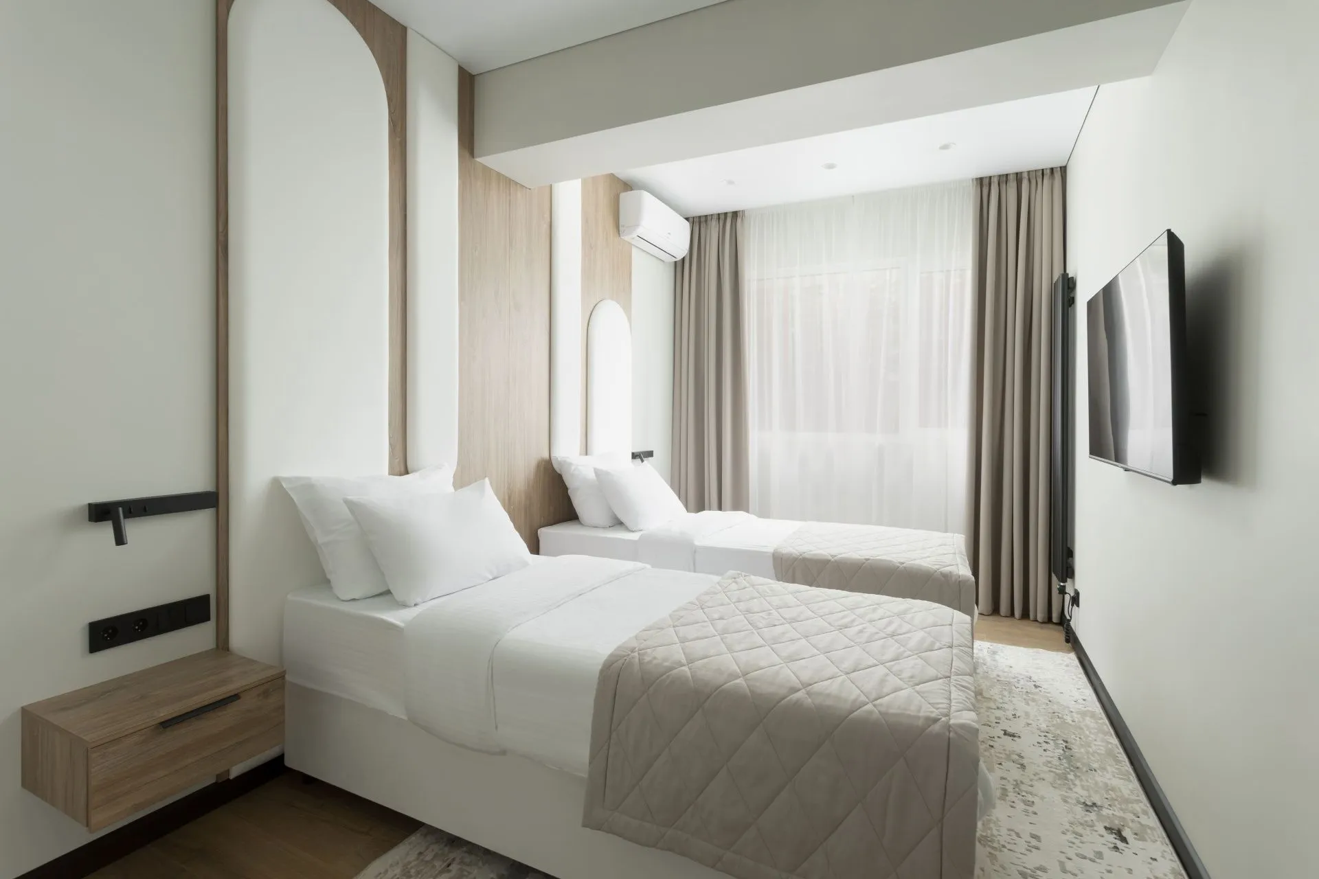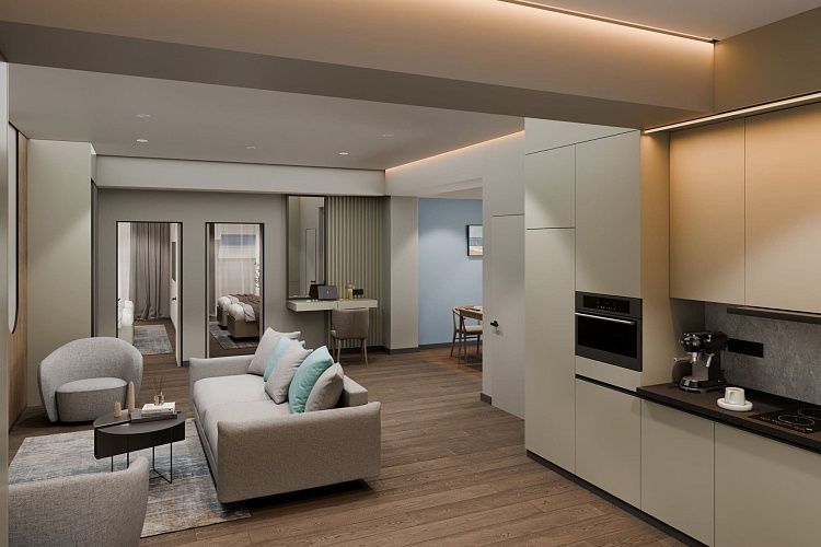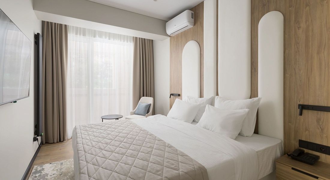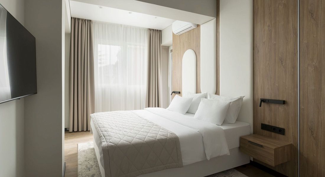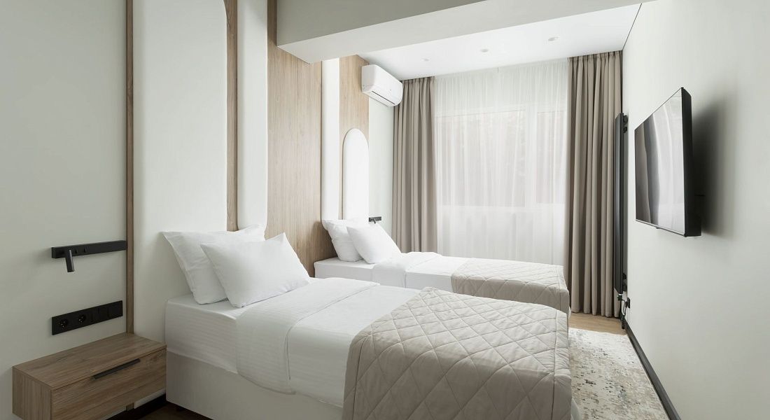 Spacious 2-room suite with two separate rooms: a bedroom and a living room. Fully equipped kitchen.