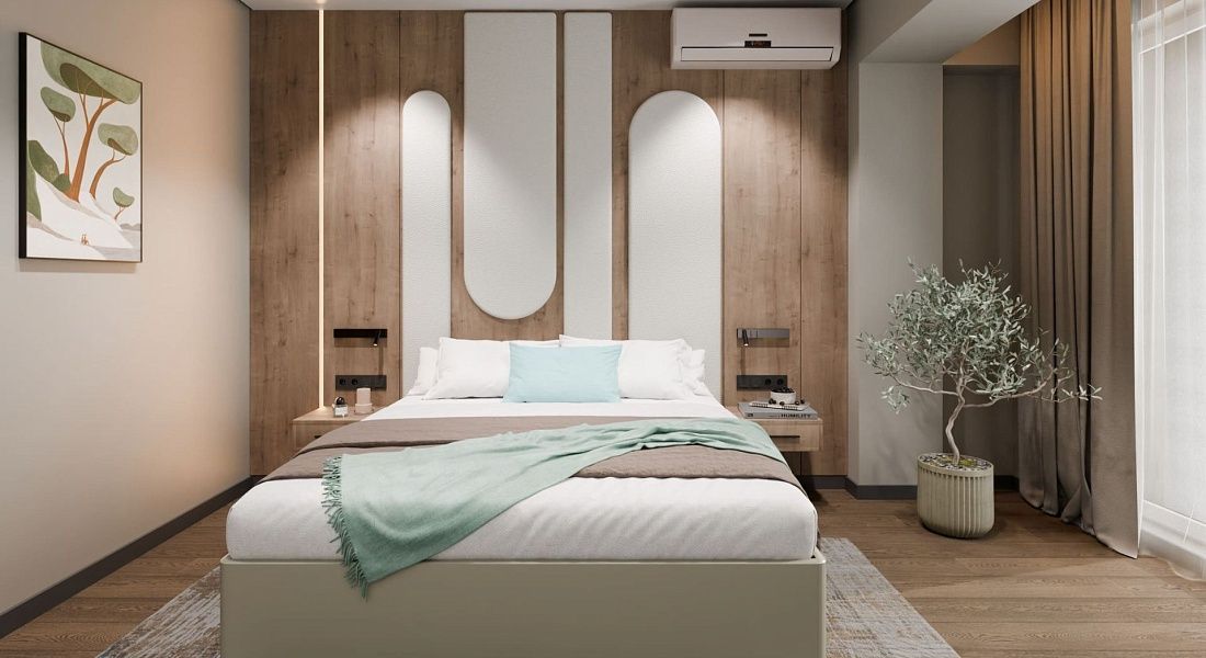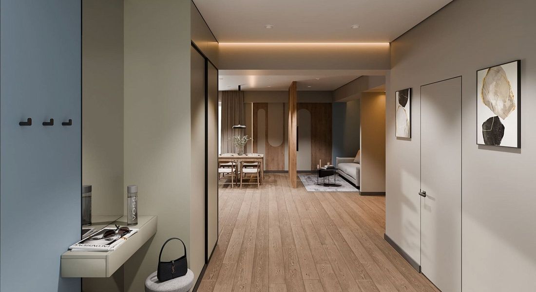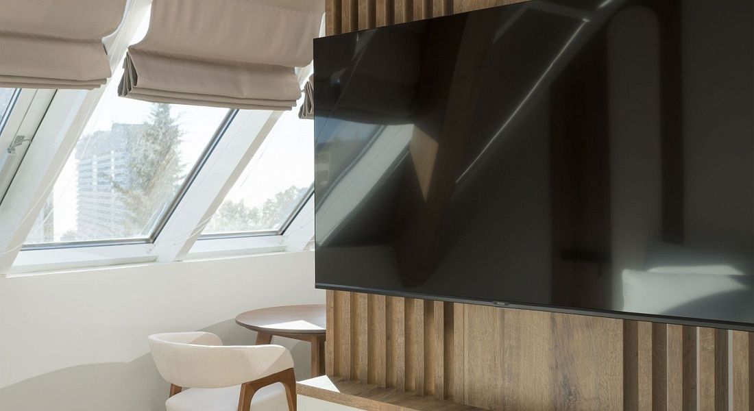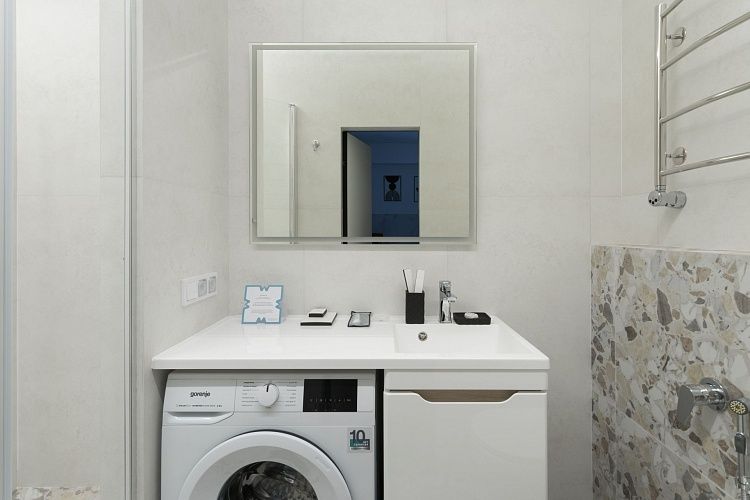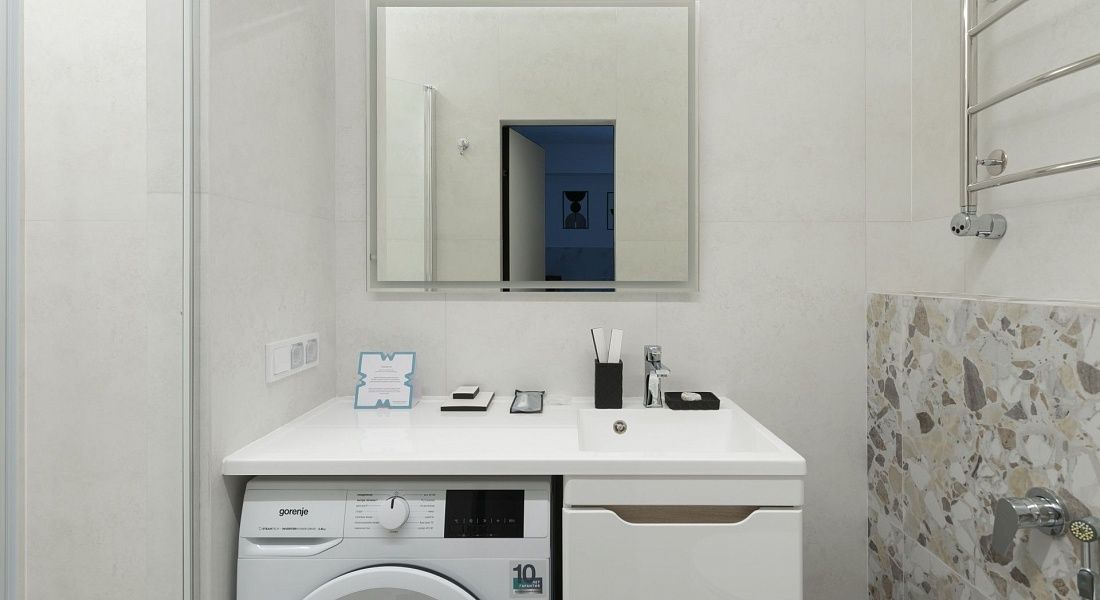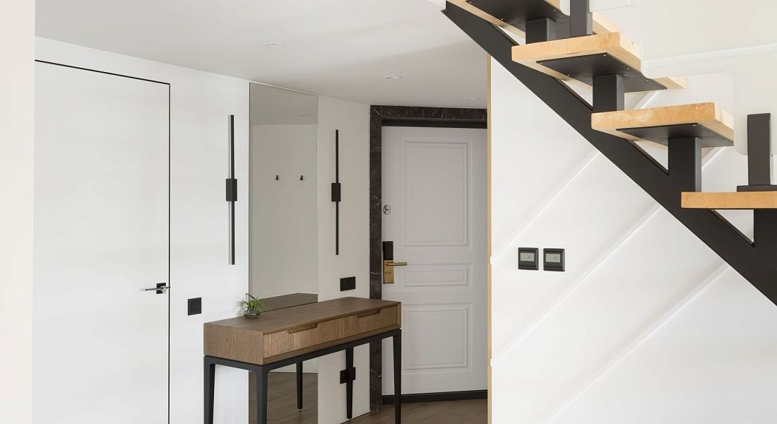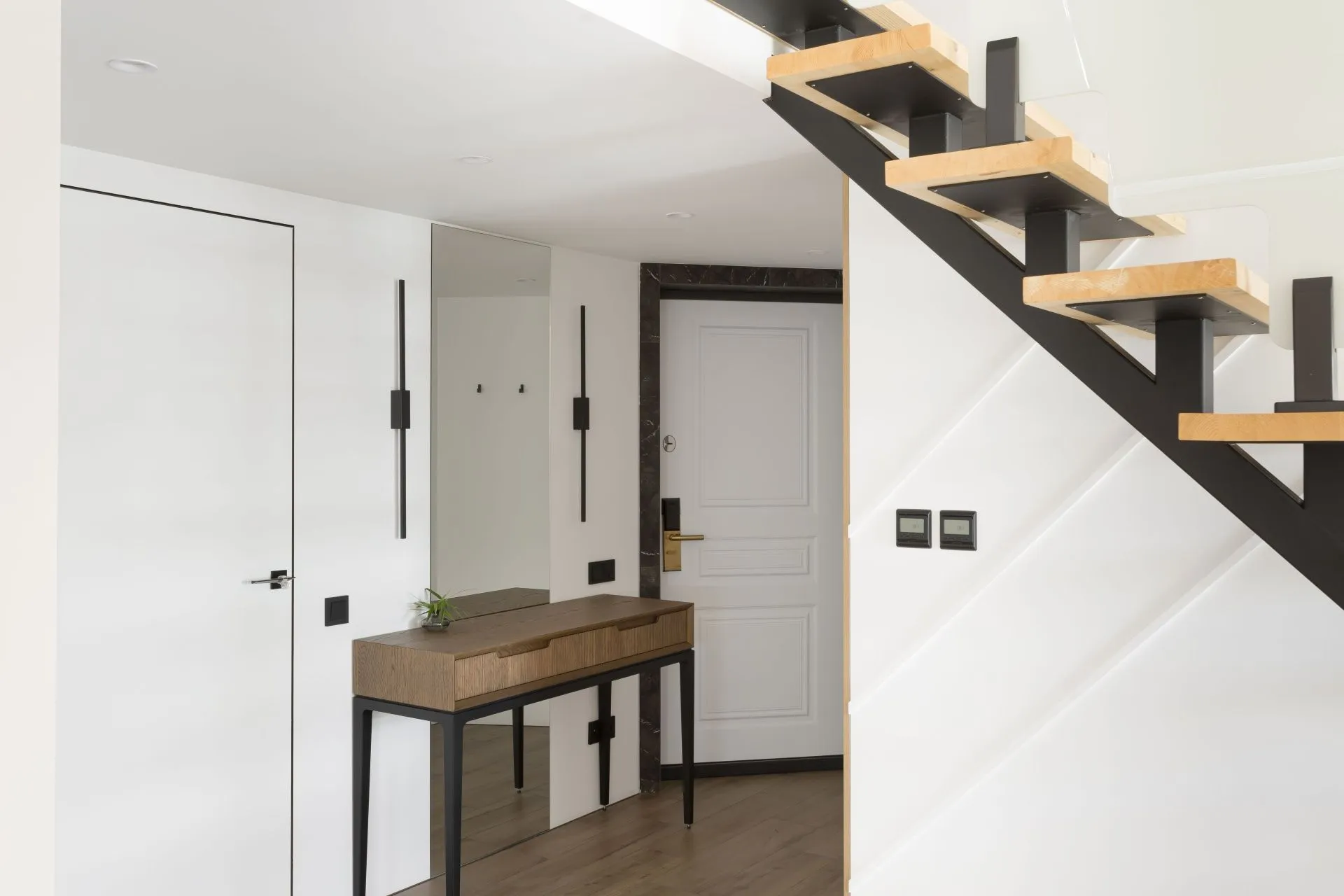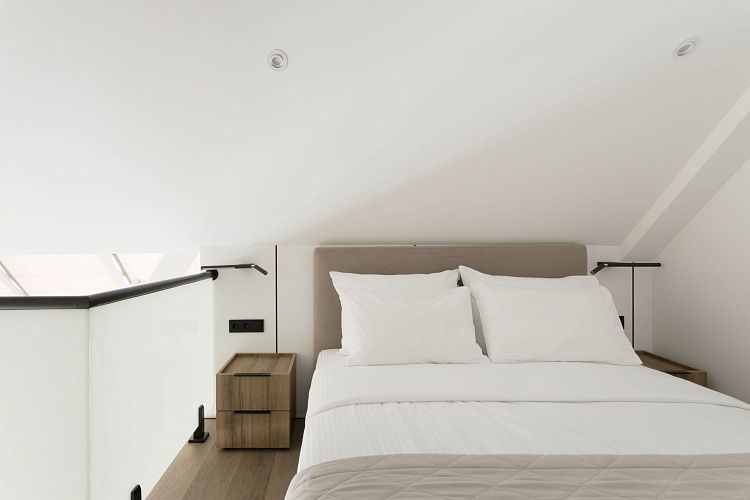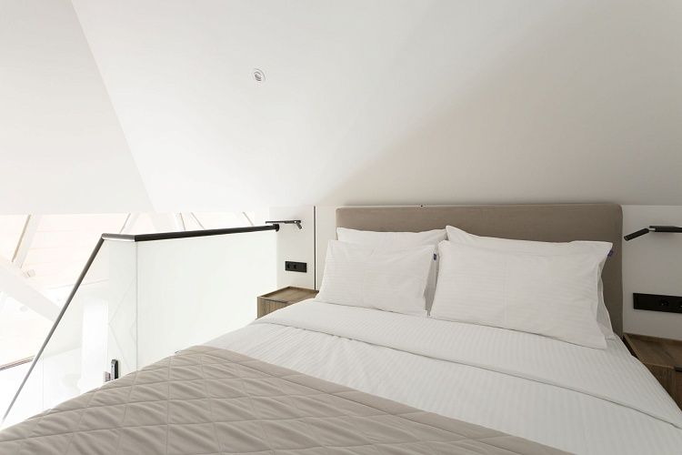 A cozy duplex apartment with two bedrooms, an equipped kitchen, a dressing room, a shower room with a washing machine. Without a balcony.